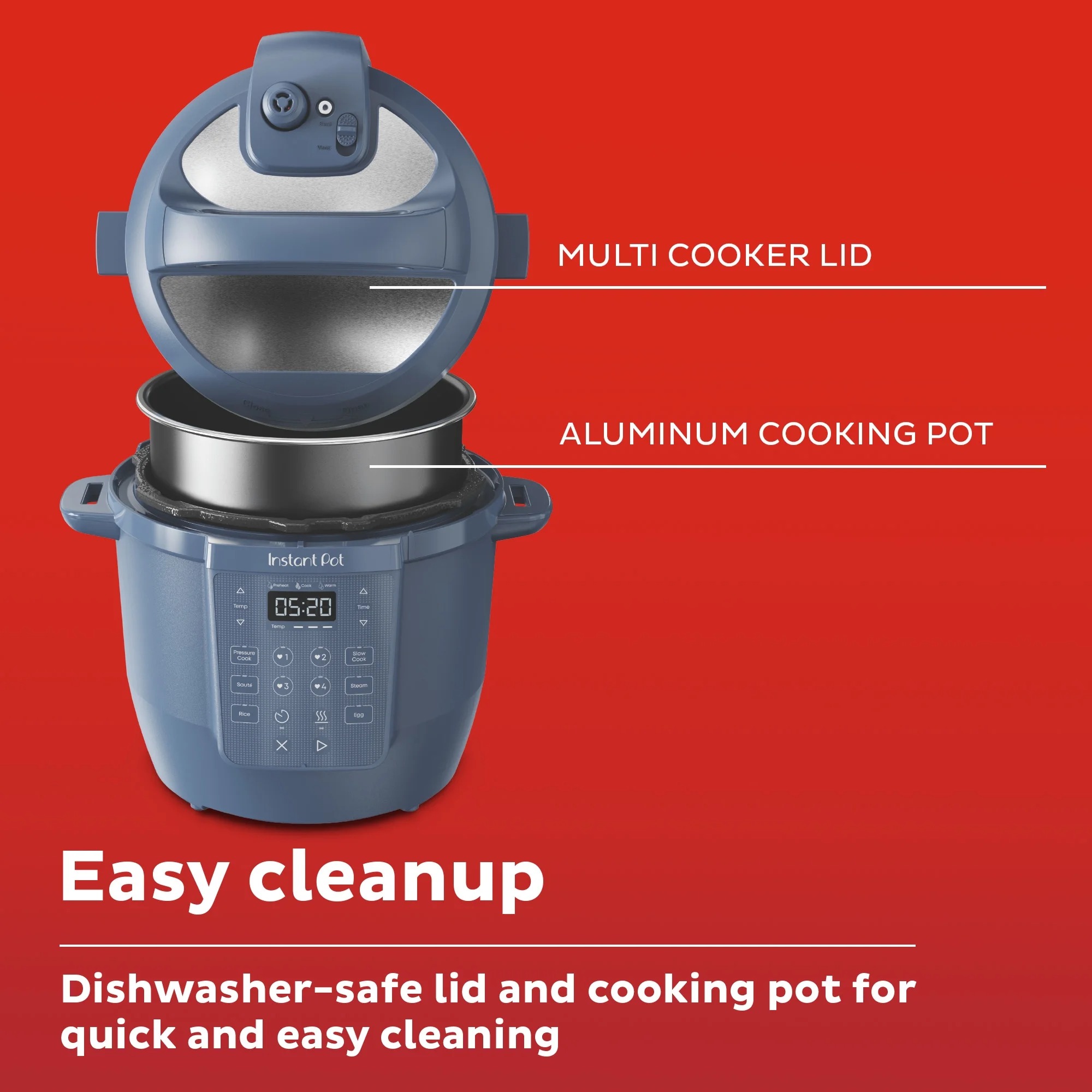 • Quick Cleanup: No more fighting about who has to do the dishes. The non-stick ceramic-coated aluminum pot and dishwasher-safe lid make washing up effortless.